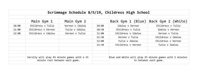 August 5th Scrimmage Schedule