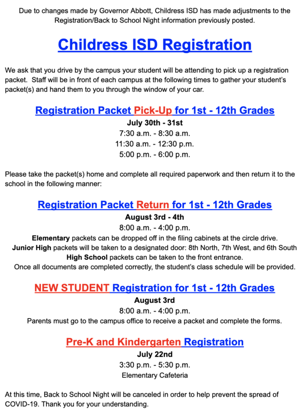 Information about Registration for All Childress ISD Students.